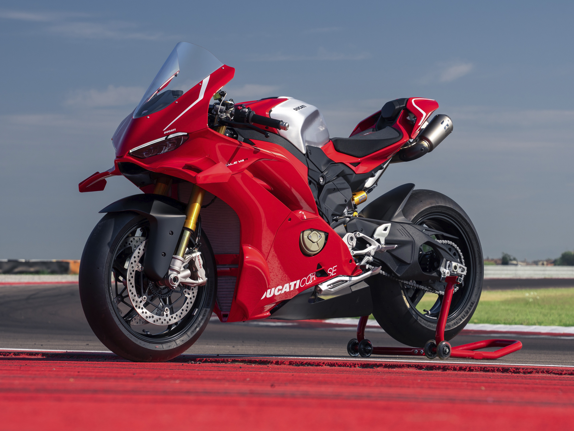 ‘Ready to Race’ is uiteraard de slogan van een andere motorfabrikant, al vat hij de Ducati Panigale V4 R wel perfect samen. Die is immers een doorevolutie van de V4 S, met 216 pk voor 187 kilo ook al niet bepaald een schotelvod. Maar goed, de V4 R gaat dus nog een eindje verder. Die is standaard goed voor 218 pk, schroef je er het Akrapovic titanium uitlaatsysteem tegenaan dan klimt het vermogen naar een godslasterlijke 235 pk en zakt het gewicht naar 180 kilo. Met de iets langere zesde versnelling stijgt de topsnelheid van 318 naar een frisse 330 kilometer per uur. Winglets en sidepods moeten zowel op de rechte lijn als in de bochten meer druk op de voorkant van de motor genereren om al dat vermogen in snelheid om te zetten. Standaard wordt de straatlegale Panigale V4 R uitgerust met de Ducati Racing Gearbox (DRG) met Ducati Neutral Lock waarbij de neutraal zich onder de eerste versnelling bevindt. Voor de vering kan je rekenen op het beste wat Öhlins te bieden heeft, voor de remmen en de samenwerking met Brembo geldt hetzelfde. De wetenschap dat een leger ingenieurs van Ducati Corse de elektronica van de Panigale V4 R op punt heeft gezet, moet je het vertrouwen geven om je investering op het circuit de sporen te geven. Al kan je er natuurlijk ook gewoon mee op straat rijden. Of ‘m in je woonkamer parkeren en er naar kijken. Of er gewoon van dromen…