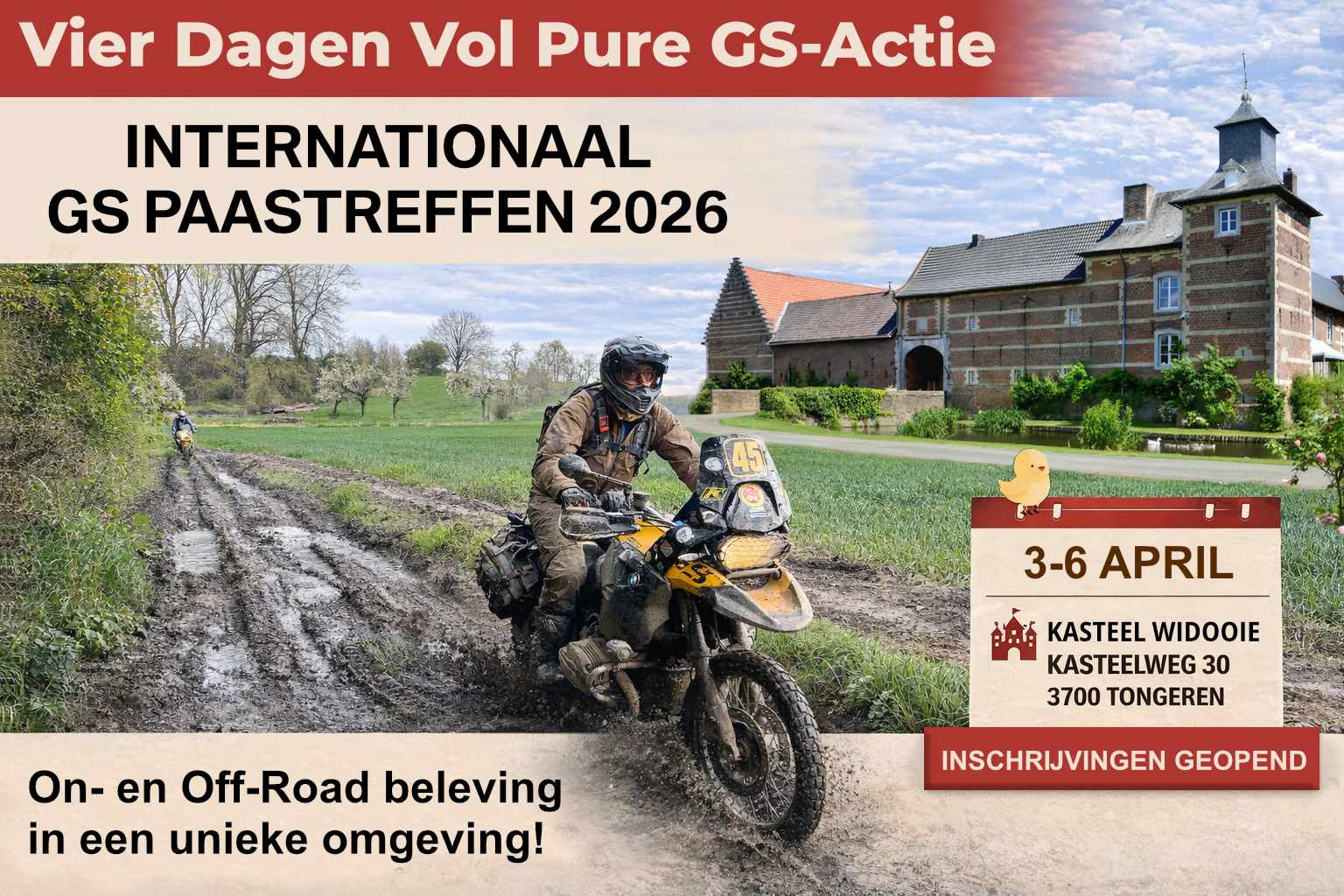 Tijdens het paasweekend vormt het Kasteel van Widooie (Tongeren) opnieuw het decor voor het Internationaal GS-Paastreffen, georganiseerd door BMW Motorclub Vlaanderen. Dit evenement groeide uit tot een vaste afspraak voor GS-rijders uit binnen- en buitenland en geldt als een van de grootste BMW-motorbijeenkomsten van het jaar.