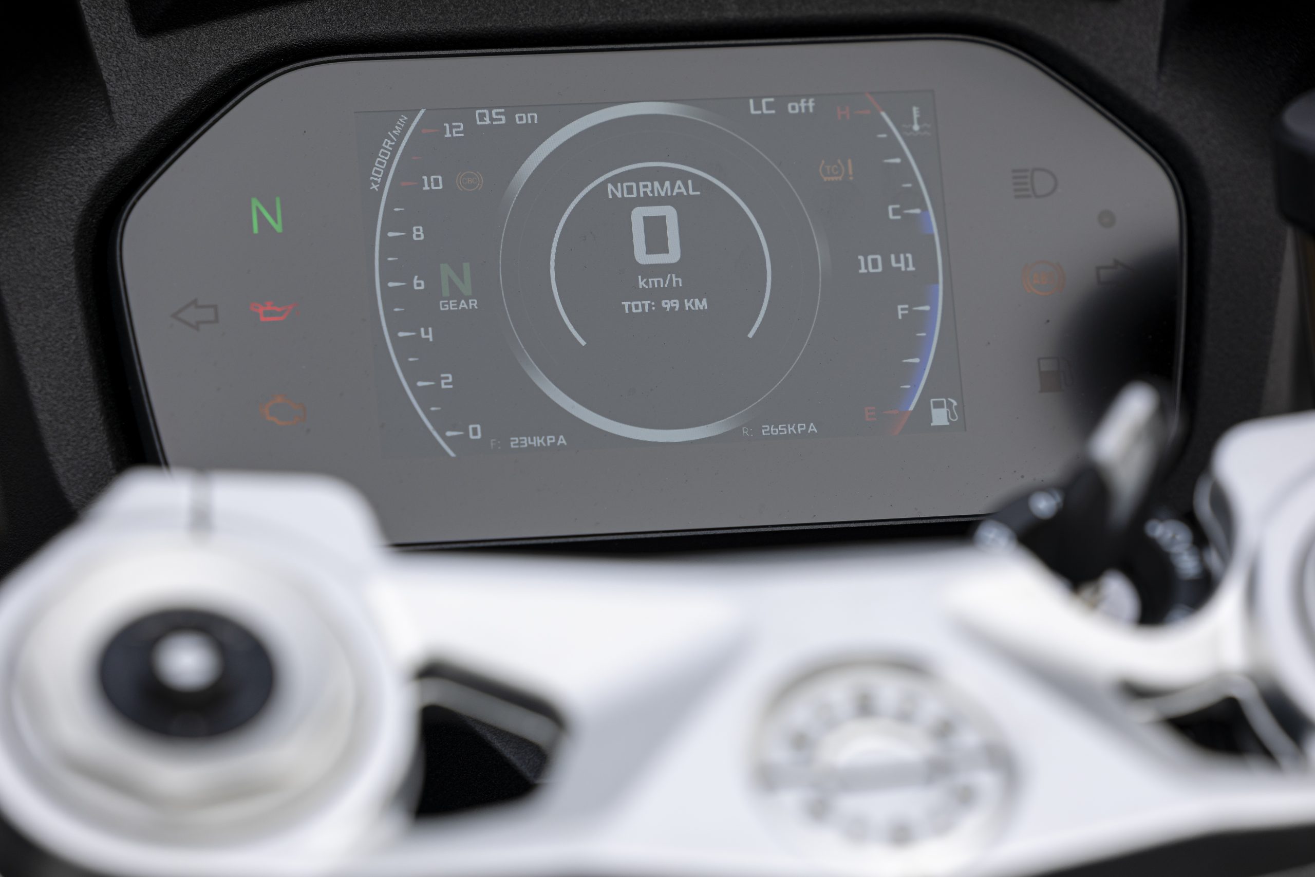Hoe de liefdespaden van beide merken zich nu precies gekruist hebben blijft wat vaag, feit is dat QJMotor enkele jaren geleden de Lucky Explorer 550 zou gaan bouwen voor MV Agusta (weet je nog…) maar dat toenmalig KTM CEO Stefan Pierer daar na de overname door het Oostenrijkse merk hardhandig een stokje voor stak. Daarna was de liefde tussen QJ en MV danig bekoeld, al was er kennelijk wel al een container met 921-blokken onderweg naar het Verre Oosten. QJMotor spreekt het zelf niet hardop uit, maar het is duidelijk dat het blok uit de Brutale 921 – daarna doorontwikkeld voor het voortijdig gesneuvelde 921 S prototype – in ieder geval de basis vormde voor het kloppend hart van de 921 RR. Dat zie je, én dat hoor je zodra je de startknop indrukt: de kenmerkende rauwe MV-rasp herken je uit duizenden.