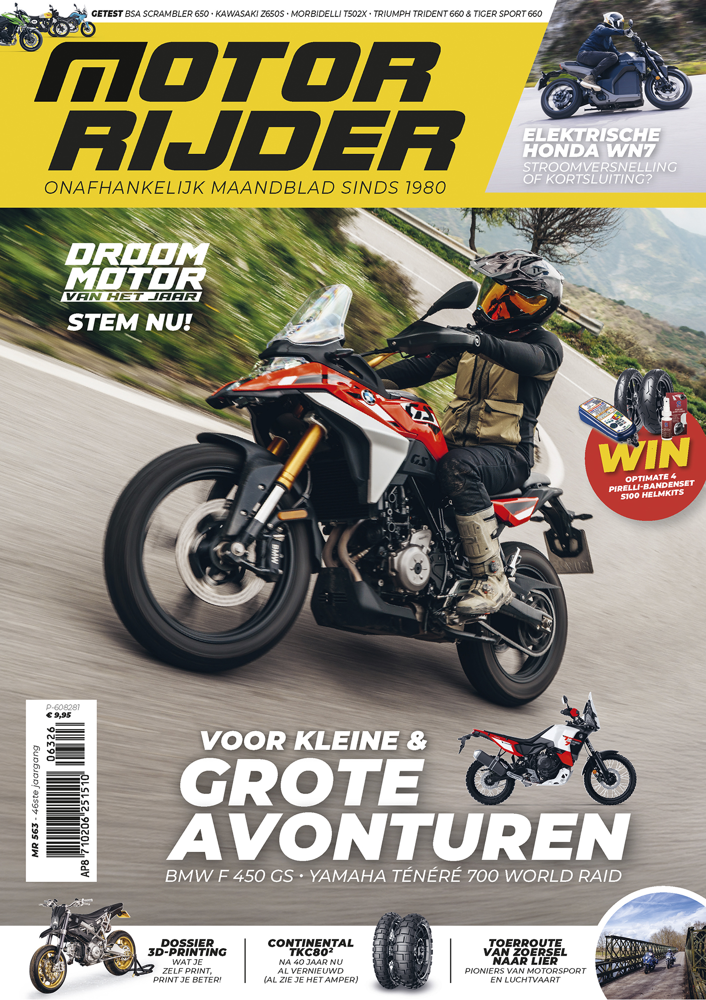 Met de vierde verkiezing van de Droommotor van het Jaar gaan we op motorrijder.be opnieuw op zoek naar de motor die jullie hart het snelst doet slaan. Yamaha selecteerde voor de verkiezing de Ténéré 700 World Raid, een adventure bike met lange adem die Tom op Sicilië ging testen. In dezelfde moeite gooide onze dappere Nederlander zijn been over de BMW F 450 GS die op datzelfde eiland werd voorgesteld. Bart ging dan weer met de Kawasaki Z650S en de Morbidelli T502X aan de rol en testte de TKC80² adventure band die na veertig jaar (40!) de TKC80 in het Continental-gamma komt aflossen. De WN7 is de eerste elektrische motorfiets van Honda, BSA maakt dan weer zijn comeback met de Scrambler 650 die een beroep doet op een monocilinder die we nog kennen uit de BMW Funduro. Mocht BSA een ander motorblok zoeken voor die Scrambler, dan kunnen ze HC Concepts altijd om een 3D-geprint prototype vragen. HC Concepts komt aan bod in ons dossier over 3D-printing en wat we er in de motorbranche mee kunnen. Op onze sportpagina’s zoomen we in op de uitdaging voor Yamaha om in de MotoGP over te stappen van een vier-in-lijn naar een V4 terwijl Bart zich voor zijn binnenlands toerverhaal van deze maand op sleeptouw laat nemen door de legendarische Jan Olieslagers, misschien wel de succesvolste Belgische motorrijder ooit.