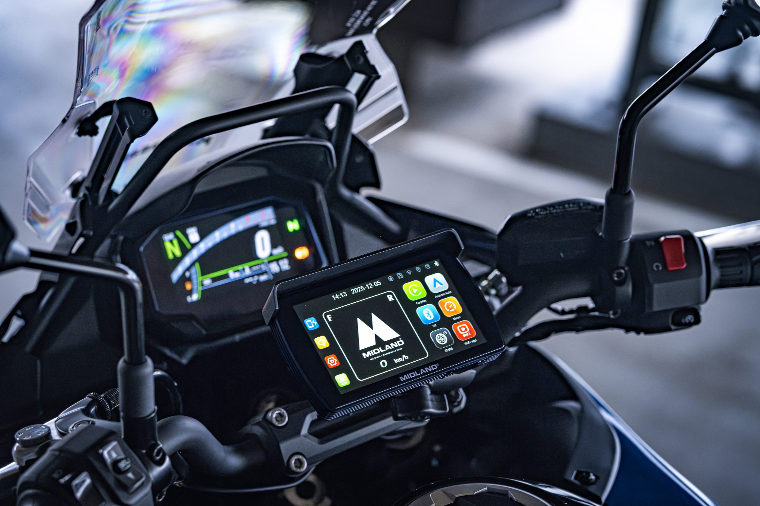 Daarmee lost Kawasaki namelijk een probleem op: het beperkte TFT-dashboard is slechts beperkt in zijn mogelijkheden. Het Midland BikePlay PRO-systeem werkt als een tweede scherm (dat net zoals een navi gemakkelijk van je stuur gehaald kan worden mocht je even gaan betalen aan de pomp) om alle minder essentiële, niet-motorgerelateerde informatie te weergeven.